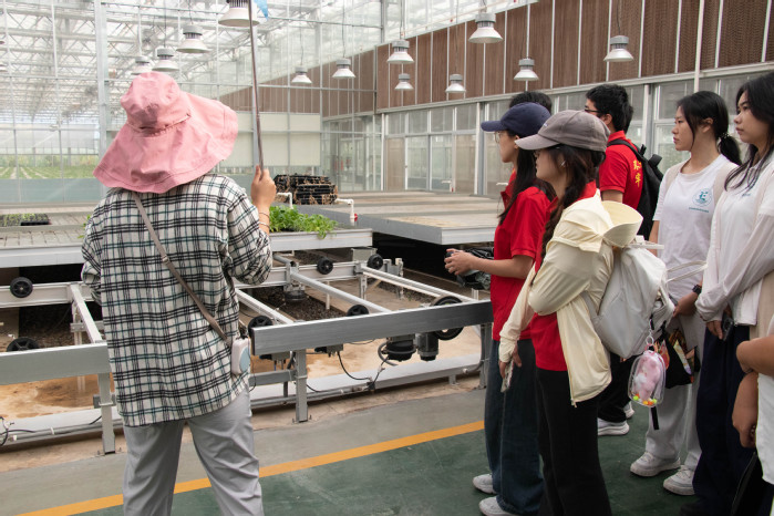 师生们在园区讲解员的带领下,参观了智慧农业馆,深入了解智能灌溉系统、环境监测设备等前沿科技,以及育苗流程的精细化操作,从种子筛选到幼苗养护,每一环节都彰显着科技助力农业的精准与高效。参观中,师生们积极与讲解员探讨智慧农业中科技与劳动者的关系,深入理解“劳动创造价值”的内涵。