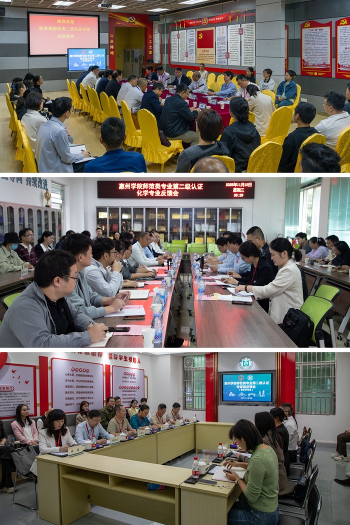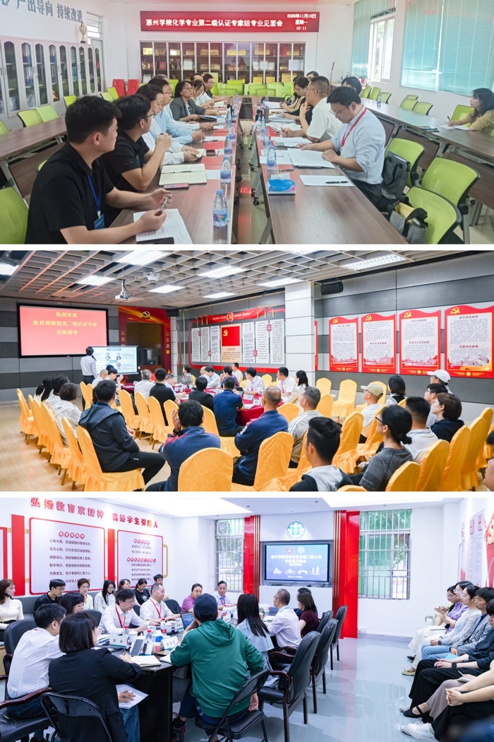 随后,体育教育、音乐学、化学三个专业分别在所在二级学院会议室召开了专业见面会,各认证专家组成员、学校领导、教务部和教学质量监测与评估中心领导班子代表,认证专业所在学院领导班子、专业负责人及相关教师参加了会议。认证专业负责人对专业建设情况进行了补充说明,专家组围绕考查重点对专业进行循证。
