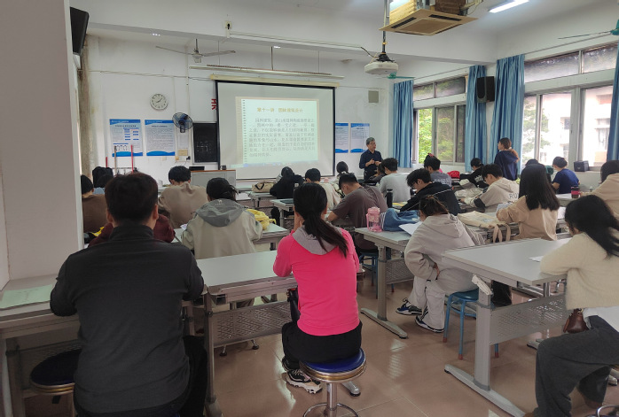 与此同时,在化工楼C606教室,肖河章主讲的《园林工程》课程则聚焦于“园路工程”这一实践性极强的主题。他系统梳理了园路的分类、功能、结构层次及材料选择,结合施工图纸和现场施工照片,详细讲解园路从放线、路基处理到面层铺装的整个工艺流程。他尤其注重理论联系实际,分析了不同园路工程常见的质量通病及其防治措施,使同学们对看似平常的园路有了更深入的认识。