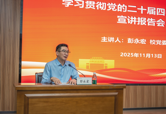 本网讯 11月13日,我校在旭日科技大楼A座302会议厅举行学习贯彻党的二十届四中全会精神宣讲报告会,学校党委书记彭永宏作宣讲报告。