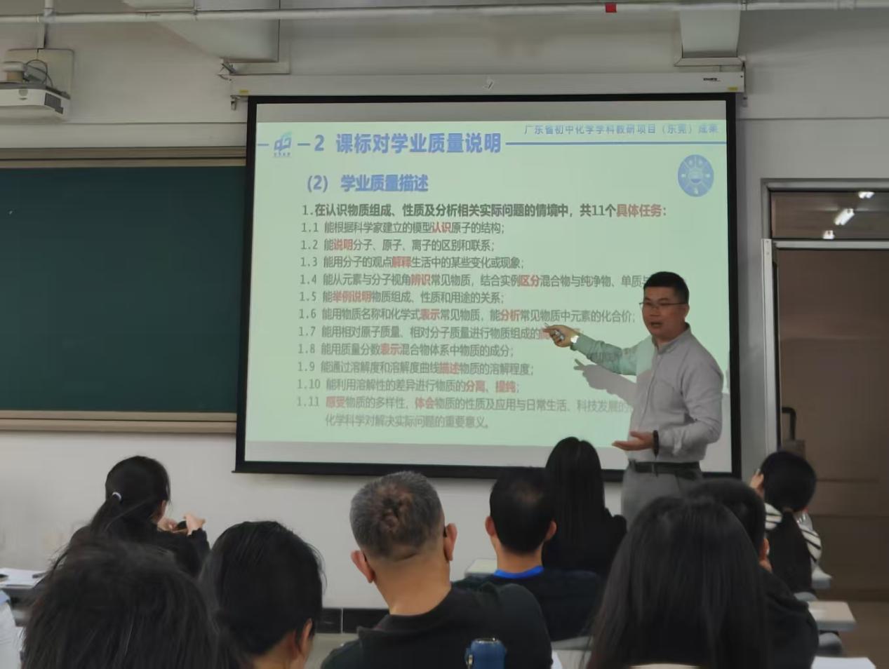 本网讯 11月13日,化学与材料工程学院在旭日大楼202室举办“素养导学的初中化学试题命制实践与思考”专题讲座。本次讲座特邀东莞市教育局教研室初中化学教研员赖思恒老师担任主讲,学院第七届卓越化学师范班全体学生参加。