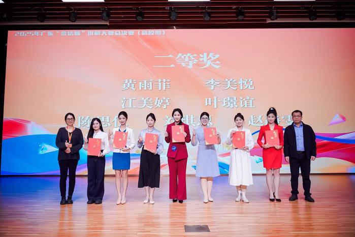 本网讯 11月19日,2025年广东“金话筒”讲解大赛总决赛在广州图书馆顺利举行。我校地理与旅游学院旅游管理专业刘琪思同学凭借出色的专业素养和精彩的现场表现,从众多参赛选手中脱颖而出,荣获二等奖。