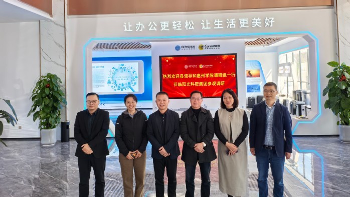 在广东阳光科密电子科技有限公司,董事长陈善明陪同调研组参观了企业的生产车间和产品展厅,重点介绍了公司的技术创新、智能化生产水平及市场布局。刘春梅教授与大家就产学研协同创新、科技成果转化路径以及高校人才培养如何更精准对接地方产业需求等话题进行探讨。