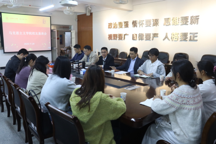 本网讯 11月29日,马克思主义学院在旭日教学大楼228会议室举行校友恳谈会,学院领导、校友代表和在校师生代表齐聚一堂,共叙师生情谊,共话学院未来发展。恳谈会由学院党委书记陈雄辉主持。