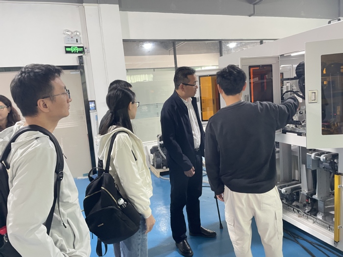 随后,许鹏带领学院一行参观了研发室,并介绍了公司研发的工业设备等,为老师们优化实践教学、对接产业前沿提供了有益参考。