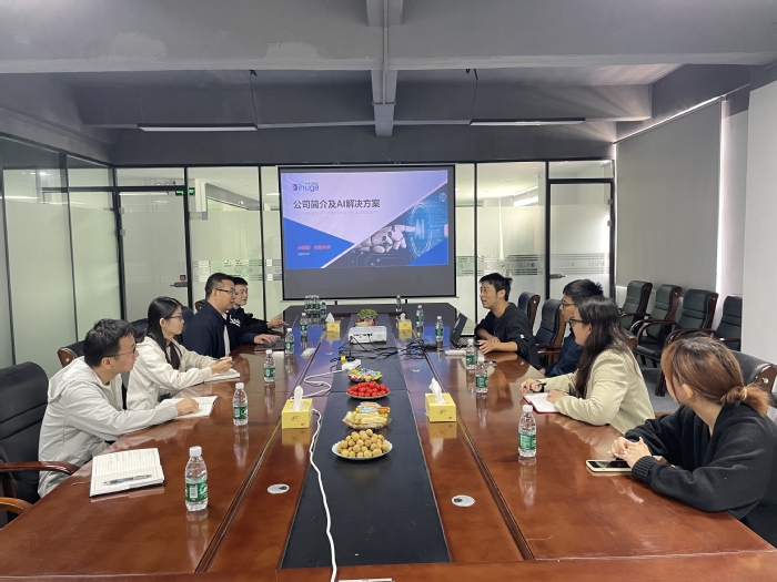 交流会上,许鹏详细介绍了公司的发展历程以及在AI领域的多个研发案例。他指出,中科迪宏秉持“大小模型融合”的创新技术路径,主营业务涵盖“AI检测”与“AI工厂”两大业务矩阵。公司研发打造的TIMESAI深度学习开发平台等已在行业内处于领先地位。王震对中科迪宏的前沿技术表示高度认可,同时就学院的发展概况、学科特色以及人才培养模式等方面进行了介绍。双方一致表示,期待未来能在工业软件等相关领域,围绕项目联合研发、人才共同培养、学生实习就业等方面建立深入的合作关系。