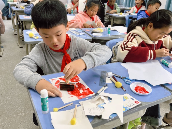 第一站:平陵中心小学美育浸润之“纸板版画印出草木生机”