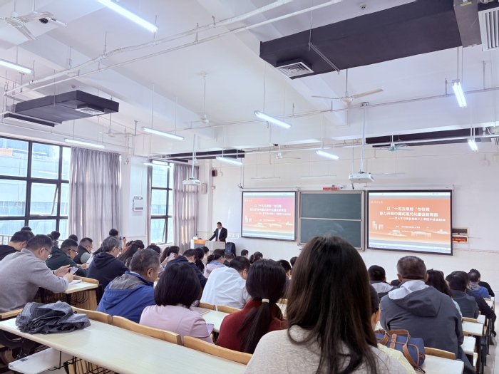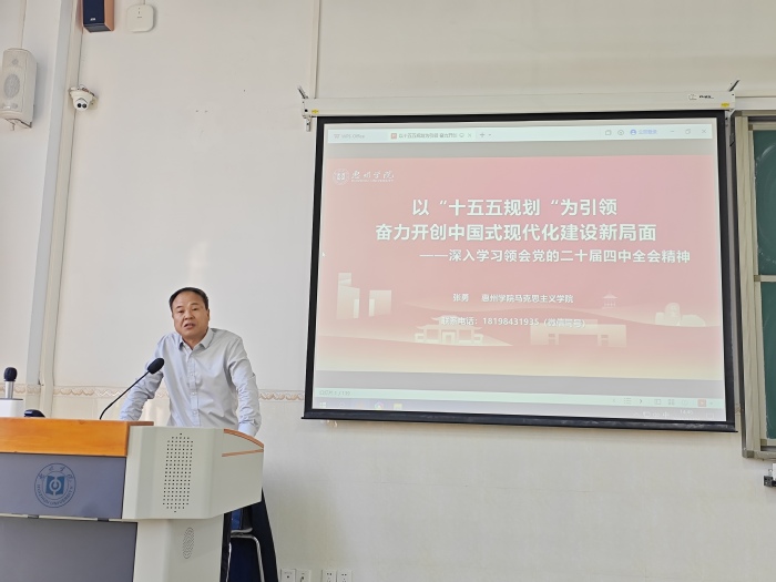 本网讯 为深入学习贯彻党的二十届四中全会精神,11月26日,化学与材料工程学院联合能源与物理学院举办专题报告会。马克思主义学院张勇教授应邀作题为“以“十五五”规划为引领 奋力开创中国式现代化建设新局面”的专题报告。报告会由化学与材料工程学院党委书记郭爱平主持,两个学院全体教职工参加学习。