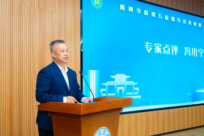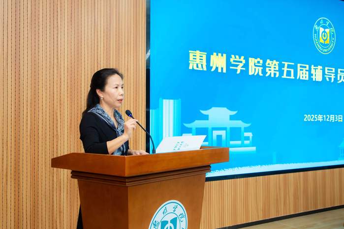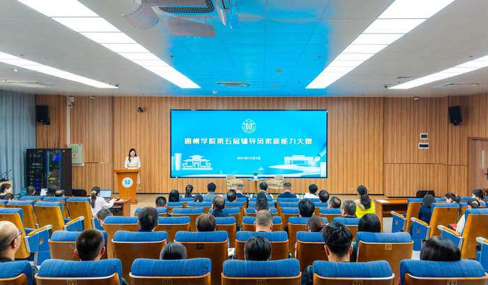 本网讯 12月3日下午,惠州学院第五届辅导员素质能力大赛决赛在旭日科技大楼鹏华会议厅举行,大赛由学生工作部、教师工作部、工会主办。本次大赛旨在深入学习贯彻党的二十届四中全会精神,以赛促建、以赛促学,全面提升辅导员队伍的政治素质、业务能力与综合素养,进一步推动学校思想政治工作高质量发展。