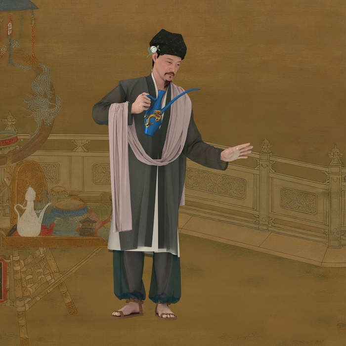 该作品以《夏景货郎图》服饰为主题,运用三维数字技术细致还原传统服饰的结构与纹样细节。其创作实践来源于我校服装学院内衣数字技术教学团队在传统服饰数字化传承方面的长期深耕。