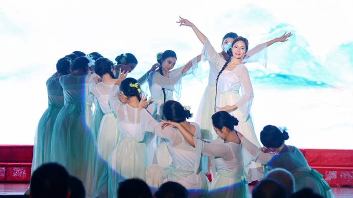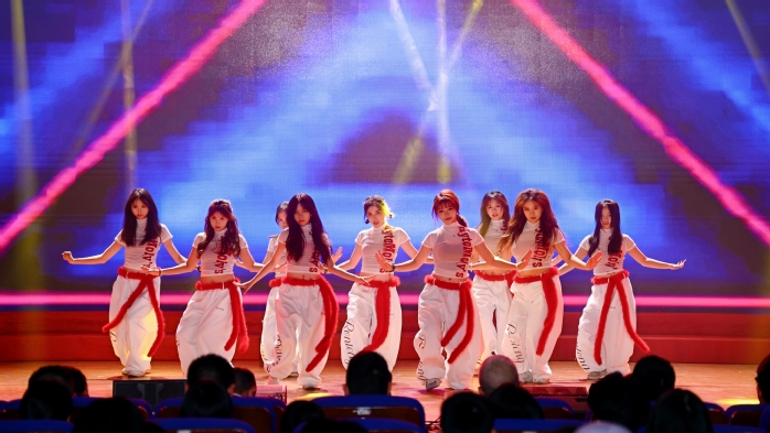 政法、经管、文传、化工、外语学院学生表演舞蹈《低头问爱》