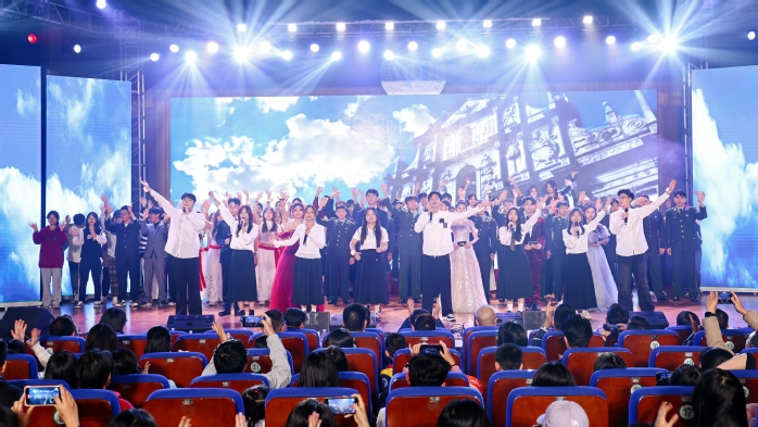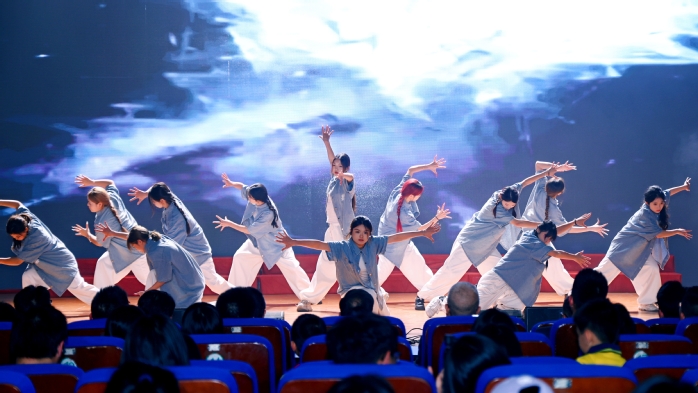 晚会节目类型丰富,涵盖了歌曲、舞蹈、朗诵、话剧等多种表演形式。舞蹈类节目中,来自新疆的学生们带来《西域姑娘》,以优美的舞姿展现了浓郁的民族风情;学校NOIF街舞协会带来的《代码与心跳》则巧妙融入了科技视觉元素,体现了传统舞蹈与现代创意的结合。