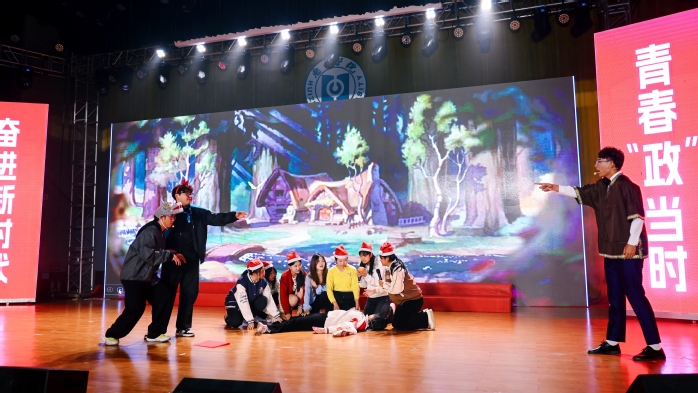 语言类节目中,学院话剧小品队带来的《这间糖水铺》对理想与现实的碰撞进行严肃探讨,引人深思;25级新生演绎的话剧《格林童话404》则以新颖的剧情构思对经典童话进行改编,幽默生动的表演引得现场笑声不断,展现出同学们丰富的创造力。