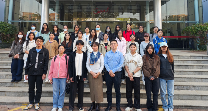 本网讯 12月5日下午,生命科学学院2023级生物质量安全检测(生物医药方向)特色班学生在毛露甜教授带领下走进澳宝化妆品(惠州)有限公司(以下简称“澳宝公司”)开展学习交流。学院特别邀请到澳宝公司产品经理、2012届生物技术专业优秀校友莫智荃参与指导,为同学们开展了一场沉浸式的企业实操教学。本次活动以化妆品检测流程体验为核心内容,帮助学生们近距离了解行业实际工作标准。