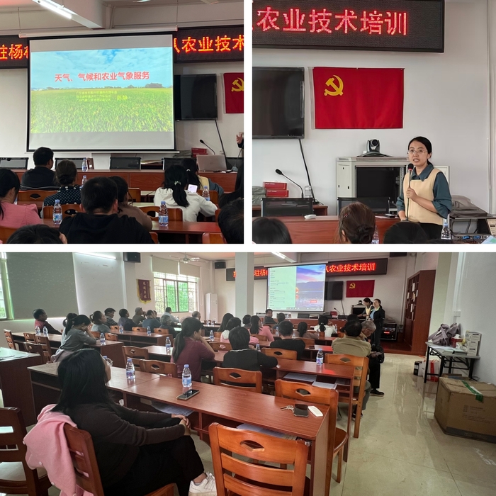 本网讯 为服务乡村产业发展,提升农户科学生产与气象防灾能力,12月10日,化学与材料工程学院驻杨村镇农村科技特派员团队联合驻浮滨镇团队,邀请惠州市农产品质量安全监督检测中心专家吴燕梅、广东省气象局副站长陈静,赴杨村镇竹子园村开展农业科技与气象服务专题培训。杨村镇本地农技人员、种植户等30余人参加培训。