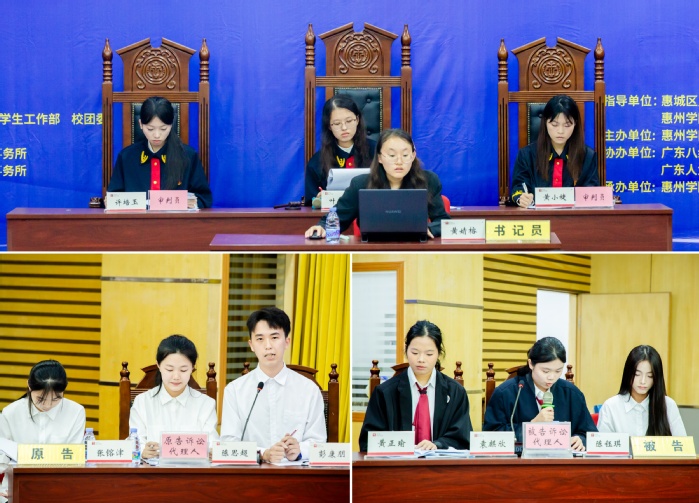 民事庭审由政法学院学生叶俊彤、黄小婕、许培玉组成合议庭,张镕津担任原告,彭康朋、陈思超担任原告诉讼代理人,陈钰琪为被告,袁麒欣、黄正瑜担任被告诉讼代理人,黄婧榕担任书记员。庭审庄严肃穆、程序规范、举证充分,合议庭经评议后当庭宣判。