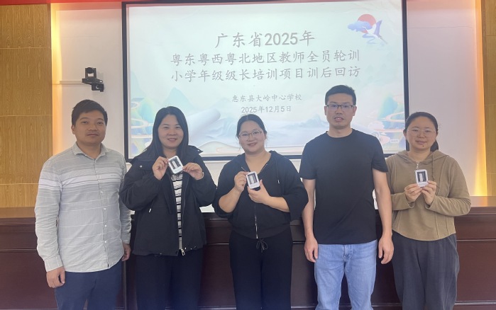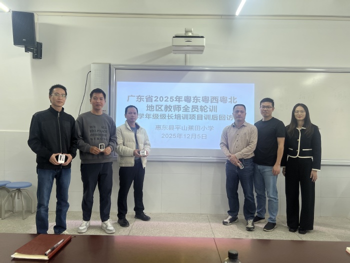 本网讯 为进一步提升省培项目培训质量,推进培训成效转化,12月5日,美术与设计学院院长李帆、副院长朱云及项目班主任刘文静、副班主任黄小龙一行前往惠东县,对学院承办的2025年广东省粤东西北地区教师全员轮训项目(小学年级级长培训班)开展训后回访。