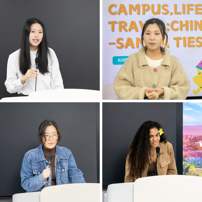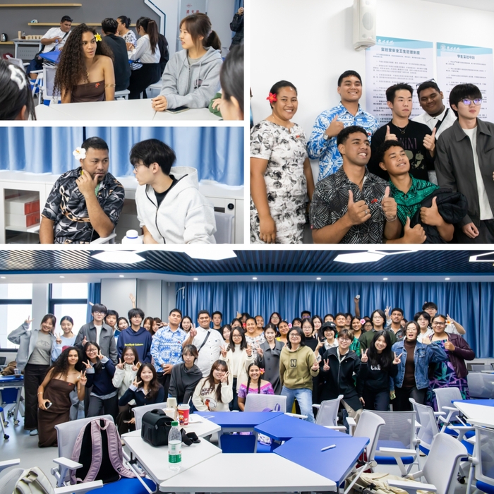 交流会上,我校教育科学学院、经济管理学院学生代表与萨摩亚中学学生代表先后发言。他们围绕校园学习生活、地域特色文化、民俗风土人情及个人兴趣爱好等话题展开深入分享。双方青年踊跃互动、畅所欲言,现场氛围轻松热烈。此次分享不仅充分展现了两国青年积极向上的精神风貌,更为彼此进一步深化了解、缔结友谊搭建了坚实桥梁。