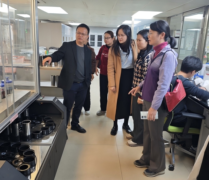 会后,团队实地走访了企业制衣车间与布料染色车间,深入了解其绿色印染工艺与创新实验平台建设情况。