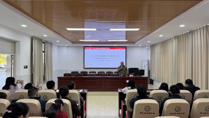 为推动人工智能与中学教育深度融合,王健海为该校120余名教职工开展“人工智能赋能中学教育教学”专题培训。讲座聚焦适配中学教学的AI工具应用,分享教学实践案例,解读AI大模型工作原理、使用伦理及注意事项,内容贴近教学实际、实用性强,为教师开拓数字化教学新思路,获广泛好评。