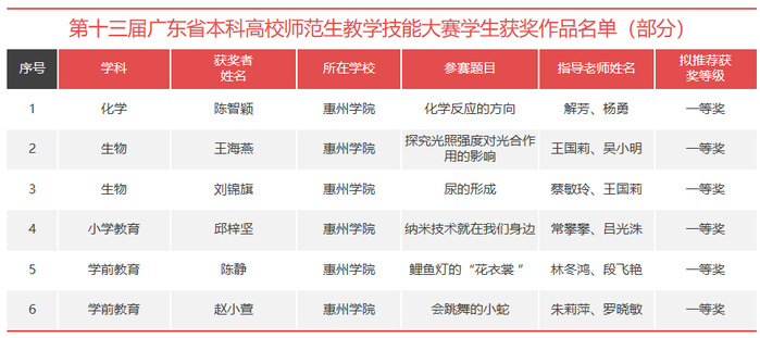 本网讯 近日,第十三届广东省本科高校师范生教学技能大赛获奖名单公布,我校学子表现亮眼,斩获一等奖6项、二等奖9项、三等奖14项,6位教师获评“优秀指导教师”。