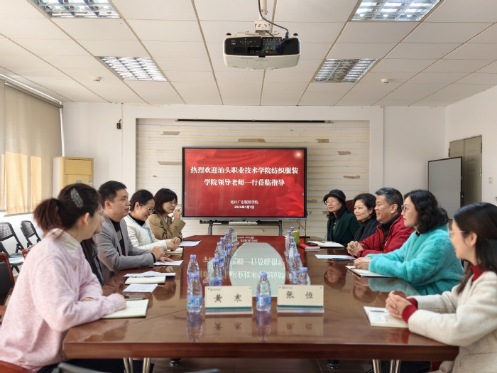 本网讯 为深化校际合作,促进办学经验互鉴,共同推动纺织服装教育发展,1月7日,汕头职业技术学院纺织服装学院党总支书记钱光健一行6人到访服装学院,围绕党建引领、专业建设、产教融合等议题开展深度交流。服装学院党委书记张小琨、院长陈学军等领导班子成员,相关学科负责人及教师代表参加此次交流活动。