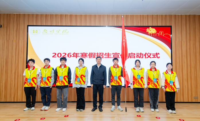 据悉,为发挥朋辈引领作用,拓宽招生宣传渠道,我校组建71支寒假招生宣传队,将于2026年寒假深入高中母校开展宣传工作,覆盖省内21个地市、116所中学。会议现场同步启动“惠院归巢•引航逐梦”2026年寒假招生宣传活动,王胜为宣传队学生代表授旗,勉励同学们当好学校的“代言人”,传递惠院声音、展现学子风采,为学校吸纳优质生源贡献力量。