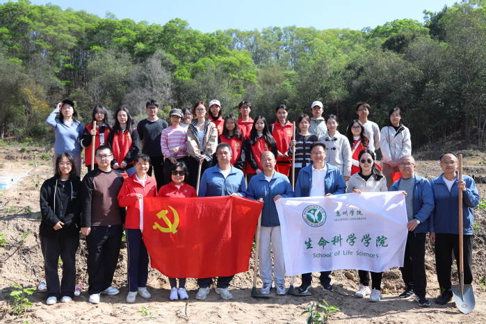本网讯 为积极响应“绿美广东”生态建设号召,提升乡村绿化美化水平,3月11日上午,生命科学学院党委联合惠城区总工会、惠城区汝湖镇党委到汝湖镇上围村开展乡村绿化主题植树活动。学院师生党员代表,惠城区总工会党员代表,汝湖镇机关和村(社区)党员代表共150余人参加。
