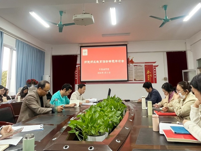 本网讯 为深入贯彻落实全国教育大会精神和《教育强国建设规划纲要(2024—2035年)》要求,全面落实学校关于健全师德师风建设长效机制的部署,3月11日下午,外国语学院在旭日大楼522会议室召开2026年上半年师德师风教育活动专题学习会。学院全体教职工参加会议,会议由学院党委书记田华文主持。