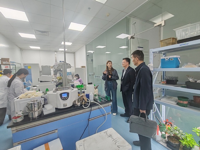 在广州唯誉智合科技有限公司,公司负责人介绍企业主营业务。该公司成立于2018年,是一家专注于转录组学、蛋白组学、代谢组学等生物组学实验服务与数据分析的国家高新技术企业,建有高通量测序、质谱分析、生物信息学等多个技术平台,与学院生物技术专业高度对口。学院一行实地参观实验室和办公场所,对实验条件和工作环境表示满意。双方就学生实习岗位需求、毕业生招聘计划及产学研合作等议题坦诚交流,达成初步合作意向。