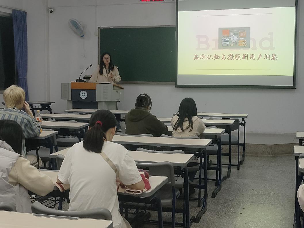 本网讯 3月13日晚,真维斯卓越人才特色班(第二期)专题讲座在旭日楼418教室举办。本次讲座由文学与传媒学院应奕可主讲,聚焦微短剧这一新兴流量入口,系统梳理了品牌宣传的演变脉络,深度剖析了微短剧如何成为传统品牌年轻化转型的破局利器,为在场学子带来前沿的行业洞察与创新思路。