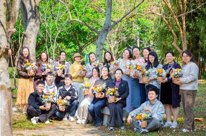 养护结束后,活动进入创意手工环节。插花区内,在花艺师的专业指引下,教师们将各色鲜花与绿叶巧妙搭配,创作出一盆盆清新雅致的插花作品,展现了对自然美的独特感悟。在植物书签制作区,大家利用干花、叶片等天然材料,通过定格、塑封等工艺,制作出一枚枚独具匠心的植物书签。这些作品不仅记录了春天的色彩,更体现了创作人对自然材料的创新应用与审美追求。