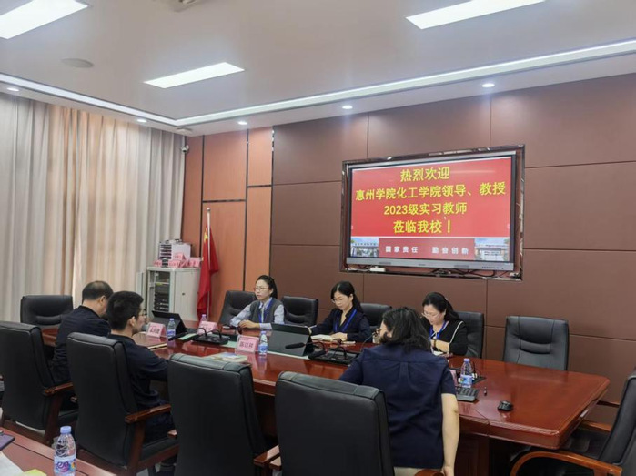 本网讯 3月19日上午,化学与材料工程学院在惠州实验中学举行化学专业2026年实习生见面会。惠州实验中学副校长陈以祥、教务处主任孟庆建、教务处副主任刘珊珊及化学学科组指导老师,学院化工系主任郑晓丹、教师李元元、李佳佳及2023级化学班13名实习生参加会议。会议由刘珊珊主持。