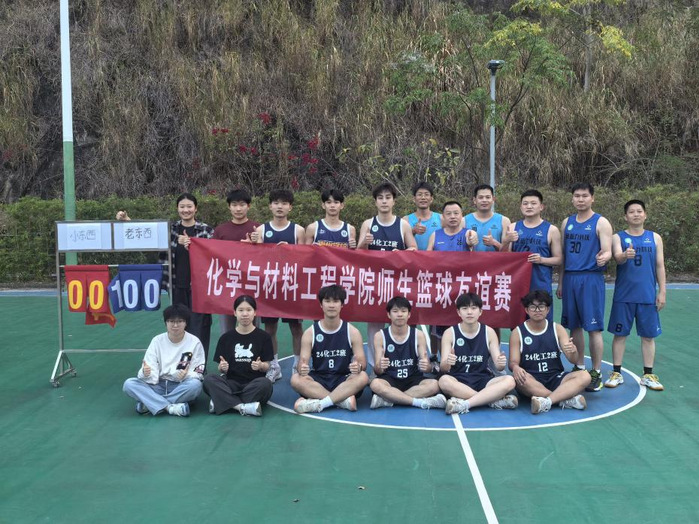 本网讯 为丰富师生课余文化生活,搭建多元化互动交流平台,进一步增强学院凝聚力与向心力,3月19日,化学与材料工程学院在北苑篮球场举行师生篮球友谊赛。学院领导、教师代表与2024级化工2班学生代表队齐聚,以球会友,共展风采。