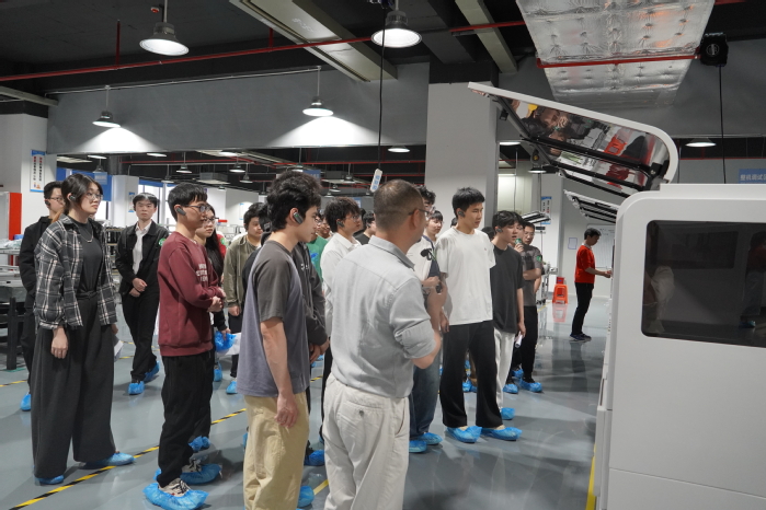 宣讲结束后,师生团队在企业相关负责人带领下,参观了洁净生产车间。车间内,自动化机械臂高效完成试剂瓶灌装、封口等工序,视觉检测系统实时进行质量检测,智能化生产场景让师生直观感受到企业的技术实力与生产标准,增强了对专业知识实际应用的认知。