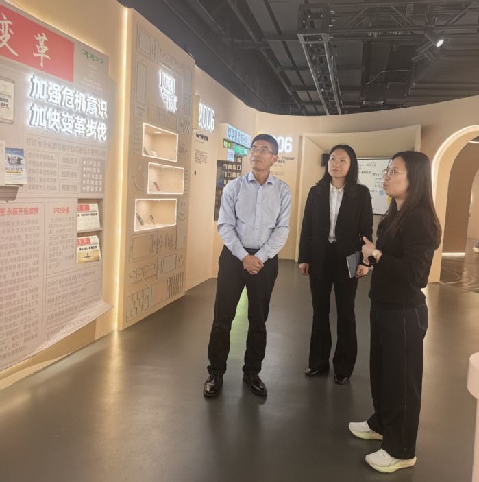 在OPPO广东移动通信有限公司东莞滨海湾园区,2015级审计专业校友黎钰婷带领学院一行参观了园区核心区域及企业文化展厅。通过沉浸式调研,学院一行感受到该企业的创新理念与职场氛围。黎钰婷详细介绍了OPPO的人才选拔标准、职业发展通道及对经管类岗位的核心素质要求,为学院进一步优化人才培养方案、提升学子职场竞争力提供了一线参考。