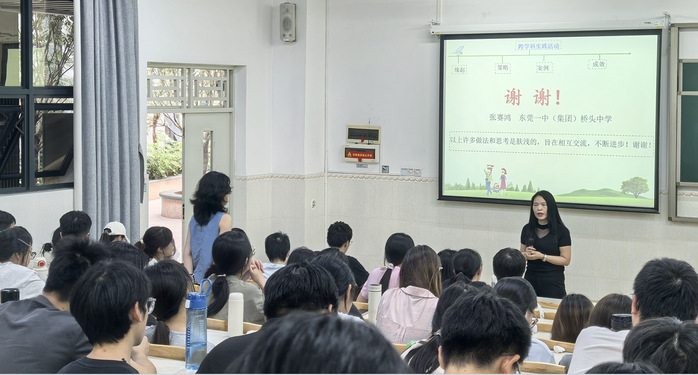 本网讯 为深入落实义务教育生物学课程标准,破解初中生物实践活动教学难题,切实提升生物科学师范生指导中学生物综合实践活动的核心能力,3月25日下午,生命科学学院邀请南粤十佳优秀科技教师、东莞桥头中学骨干教师张赛鸿在旭日科技大楼B107课室为2024级生物科学专业学生举办题为“初中生物跨学科实践活动的策略与研究”的专题讲座。此次活动作为师范生培养的关键嵌入课程,精准聚焦中学生物实践教学能力培养,着力强化学生未来胜任中学生物综合实践教学的核心素养。