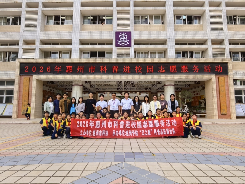 本网讯 3月26日,由惠州市科协主办、生命科学学院“义之教”科普志愿服务队承办的2026年度首场科普进校园活动在惠南学校举行。学院党委书记杨敏和惠南学校校长赖剑波到场指导。