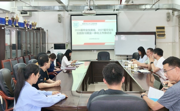 本网讯 为进一步贯彻落实教育部关于高校毕业生就业工作的最新精神,推动就业工作提质增效,3月25日下午,建筑与土木工程学院在旭日科技大楼B座1701会议室召开2026届毕业生就业及2027届毕业生实践实习就业一体化工作推进会。学院领导班子、辅导员、系主任及2026届、2027届毕业班班主任参加会议。会议由院党委副书记卢霏霏主持。