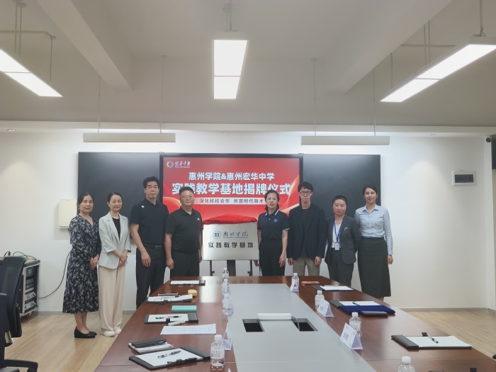 本网讯 4月9日下午,惠州学院教务部部长蒋辉带队赴惠州仲恺宏华中学举行实践教学基地揭牌仪式。宏华中学副校长徐雪萍、主任李川,文学与传媒学院党委副书记施少翰、副院长卜凌云、教务员黄吉群参加活动。