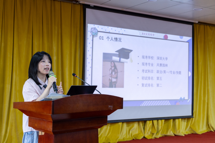 2026届考研学生代表张美婷分享了从备考到成功“上岸”深圳大学风景园林专业的全过程。她指出,考研首先要明确动机与决心,通过多渠道信息选择合适院校。在择校策略上,建议从专业、地区、院校三个层次逐步缩小范围,重点关注报录比、试题公开度、是否压分等信息,并分享了各科目备考技巧。她强调,信息差尤为关键,要尽早确定学校和专业,制定学习计划、定期复盘、灵活休息并坚持到底。