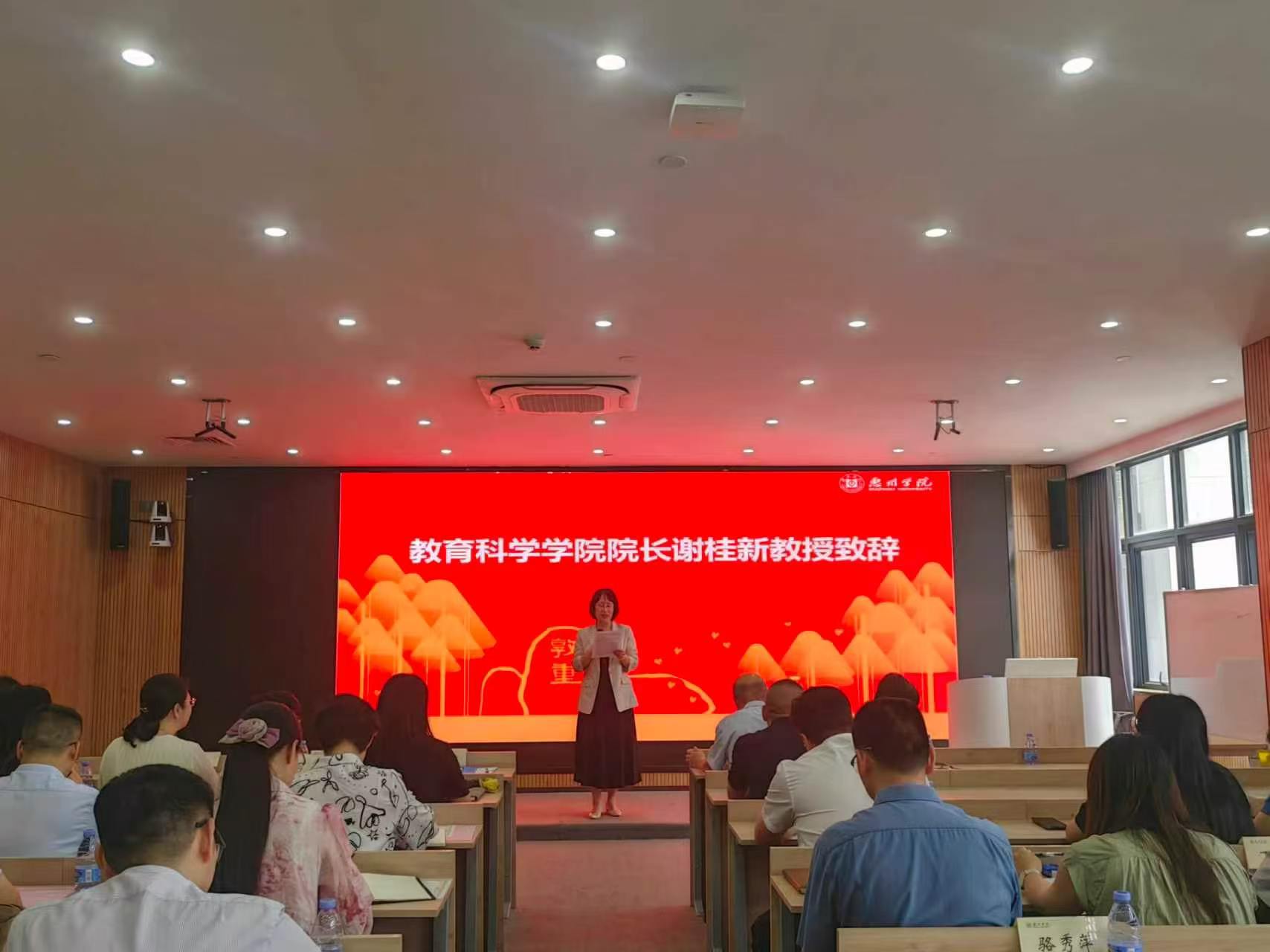 院长谢桂新介绍了学院办学概况、学科建设成果及教育管理专业硕士研究生培养现状。她指出,行业导师是连接高校与基础教育一线的重要桥梁,是研究生实践能力培养的核心力量。她对行业导师提出三点期望:一是做好引路人,带领学生深入学校管理一线,找准理论与实践结合点;二是推动协同共育,与校内理论导师协同发力,深度参与案例开发等培养环节;三是实现双向赋能,与学院教师合作开展课题研究,达成校地双方共同成长。