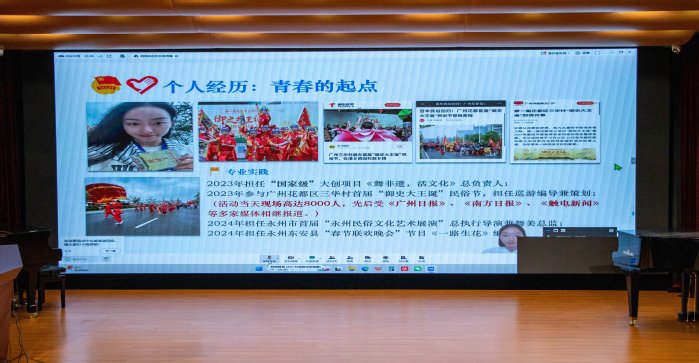 宣讲中,周湘菲系统解读了西部计划相关政策,清晰梳理了参与流程与保障措施,帮助同学们全面了解相关的政策支持。在经验分享环节,她以自身在惠东县白花镇的基层经历为引,从初入基层的青涩懵懂到践行志愿精神、实现青春蜕变,用真实经历诠释“选择基层不是牺牲,而是青春的绽放”,生动展现了基层服务的价值与意义,引发在场同学强烈共鸣。