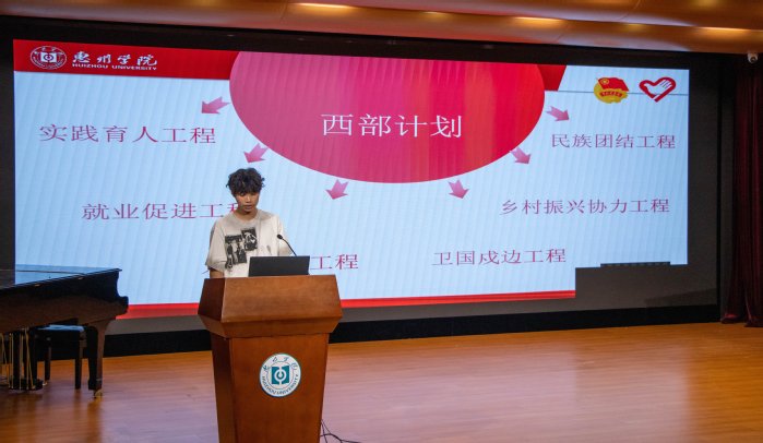本网讯 为推动大学生志愿服务西部计划落地,引导毕业生到基层建功立业,在共青团惠东县委和校团委指导支持下,音乐学院联合能源与物理学院于4月15日下午在音乐楼演讲厅举办2026年西部计划与基层志愿服务主题宣讲分享会。活动邀请西部计划(“百千万工程”专项行动)志愿者、省级宣讲团成员周湘菲作主题分享,能源与物理学院团委学生骨干杨雁淇介绍具体申请流程。