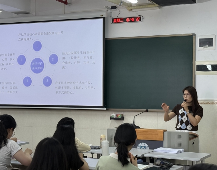 本网讯 为深化学生对“教-学-评”一体化理念的理解,强化师范生英语课堂教学实践能力,4月15日上午,外国语学院在旭日科技大楼A座401教室开展《英语教学案例研究》课程专家嵌入式课堂教学活动。活动邀请惠城区教师发展中心教研员陈雅桢担任主讲,英语教师教育课程组教师及2023级英语专业学生共同参加。