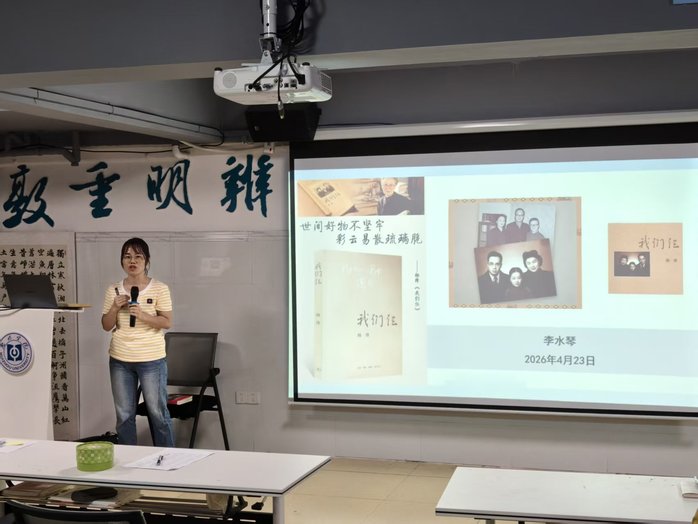 生命科学学院辅导员李水琴分享了杨绛先生的《我们仨》,从创作背景与文本内核出发,解读平淡文字中一家三口相知相守的温暖情谊,呈现特殊时代下知识分子家庭的真挚日常与豁达人生态度,寄语师生珍惜点滴美好、守护温情。