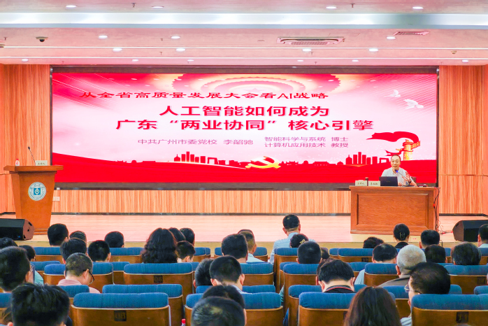 培训中,李韶驰教授围绕“战略认知、机理剖析、能力提升”三个维度,深入解读党的二十届四中全会和全省高质量发展大会精神,系统讲授人工智能驱动“两业协同”的技术逻辑与赋能路径,AI时代领导干部的数字能力建设。授课站位高远、内涵丰富、案例鲜活,为学校在人工智能新赛道上抢抓机遇、深化教育教学综合改革提供了重要启示。